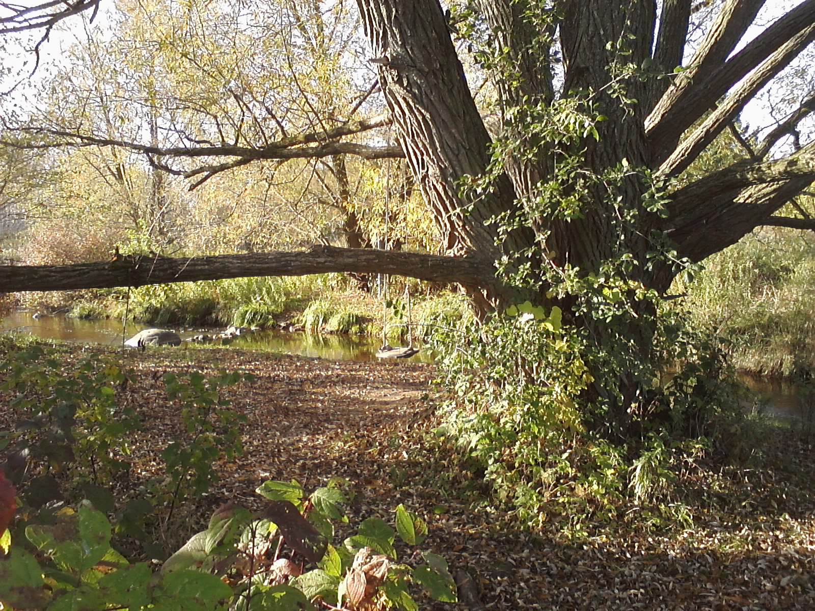 The dirt path became rougher and I simply didn't want to see anymore, I wanted to get out of this wide, gaping space among the far off trees, so I returned to the bridge, crept around the fence blocking it from the north side, and followed the northeast path through the old Revival grounds, where everything was still blissfully ancient and still. This magical, sleepy valley of long grass, ancient oaks and bubbling streams, where once were held tent Revivals, how relieving to see it still dreaming in autumn quiet. At the smaller bridge, I made eye contact with a young woman with short brown hair who looked up from gazing into the stream.
